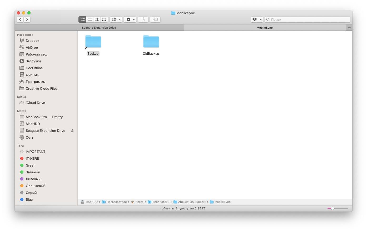 Именно они помогут нам в переносе папки хранения резервных копий iTunes.