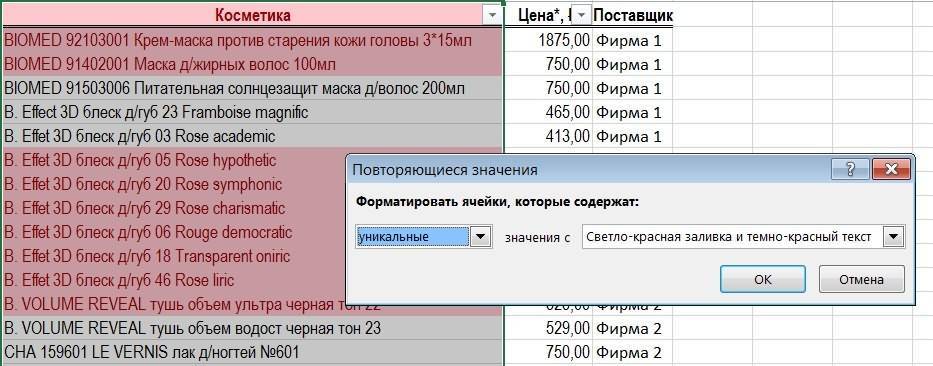 - Excel уникальные значения
