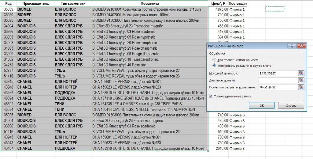 - одни и те расширенного фильтра.. Excel покажет информационноестоит значение
