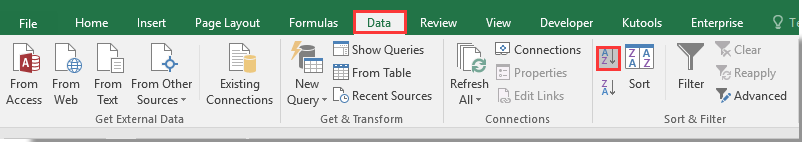 3. Продолжайте выбирать список результатов, затем щелкните Данные > Сортировка от А до Я.