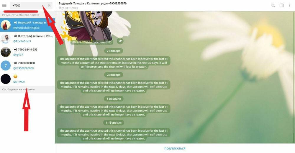 ВАЖНО. Такой поиск будет возможен только для открытых каналов