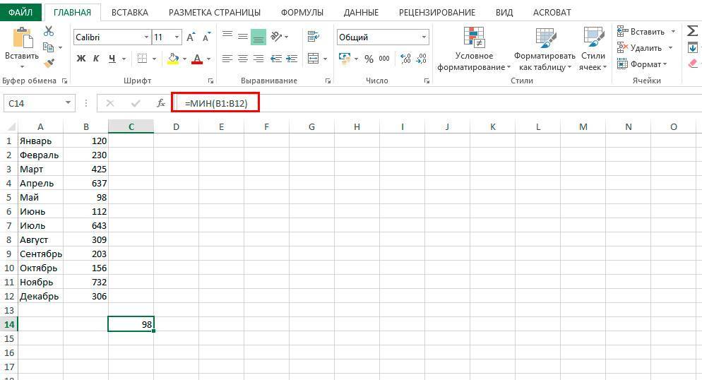 Теперь будет легче разобраться, как найти минимальное значение в Excel. Алгоритм действий полностью идентичен. Просто вместо «МАКС» выберите «МИН».