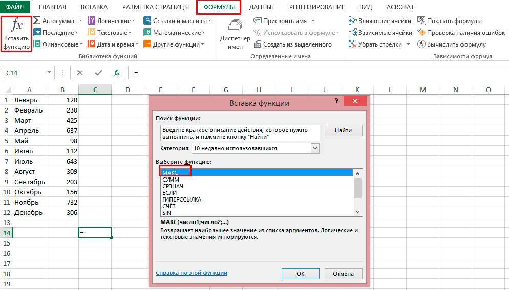 - Нажмите «Вставить функцию».