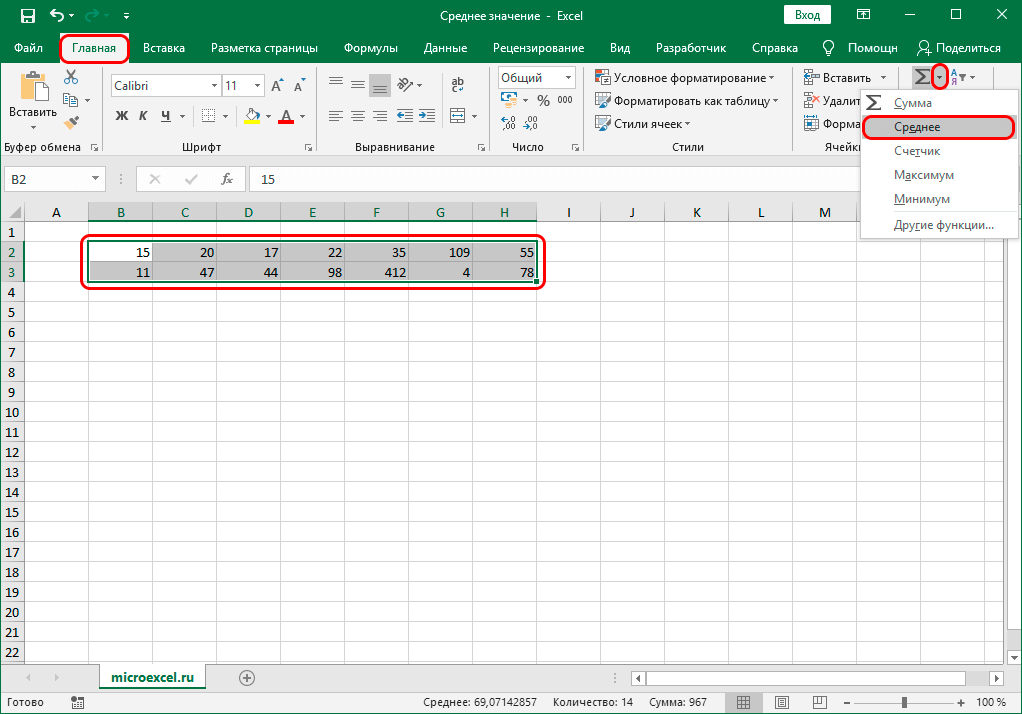 Вот как найти среднее значение в Excel:
