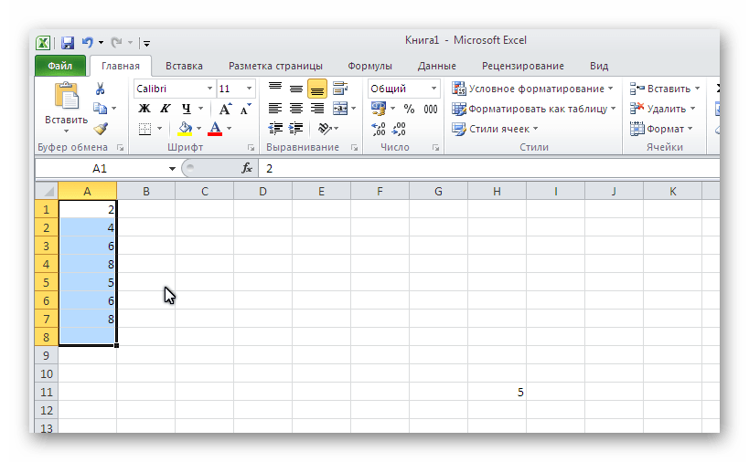 Например, если выделить два столбца, и вышеописанным способом вычислить среднее арифметическое, то ответ будет дан для каждого столбца в отдельности, а не для всего массива ячеек.