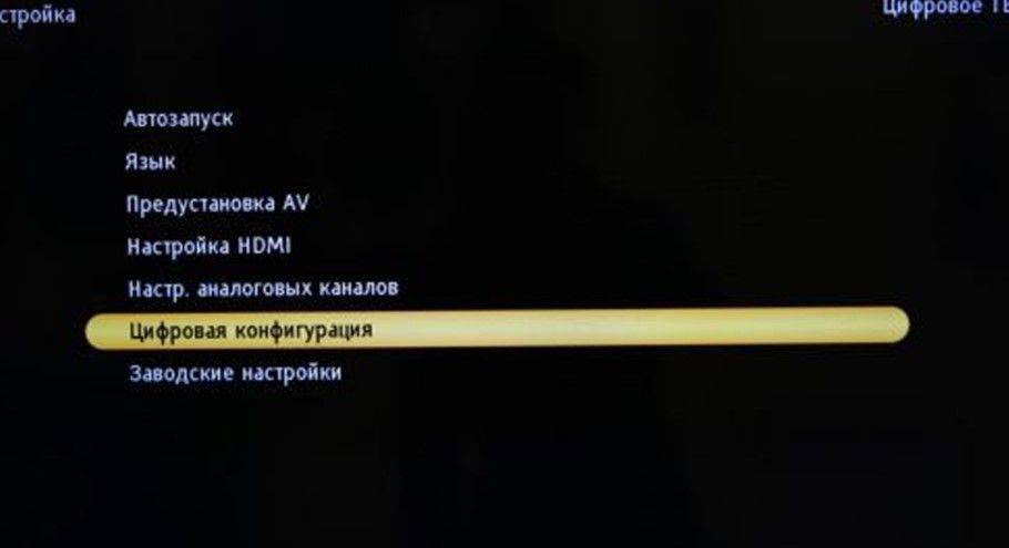 - Возможно, в настройках необходимо будет выбрать тип сигнала – аналог или цифра. Например, в телевизорах Сони он называется «Цифровая конфигурация», в Панасоник – «DVB-T».