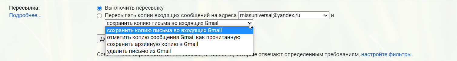 Или обновите страницу, чтобы завершить переадресацию Гугл-почты. После обновления в разделе “Пересылка” выберите функцию “Пересылать копии входящих сообщений на адреса”.