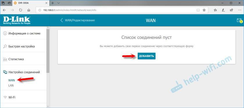 В разделе «Настройка соединения» – «WAN» нужно создать подключение.
