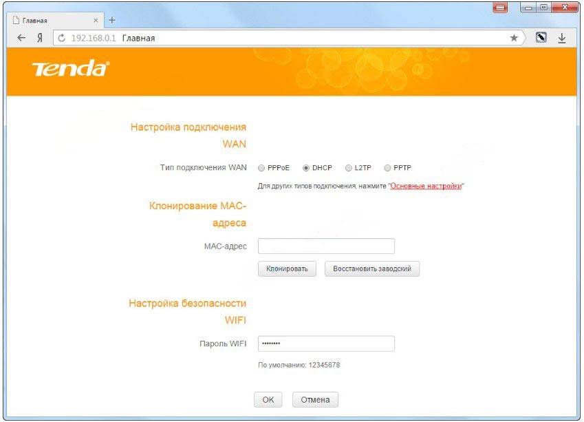 - Ввести адрес 192.168.0.1 для перехода в меню параметров.