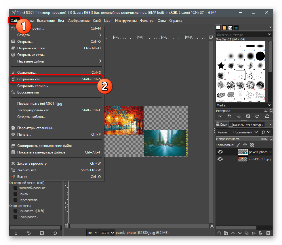 По завершении снова откройте меню «Файл» и отыщите там пункт «Сохранить как».