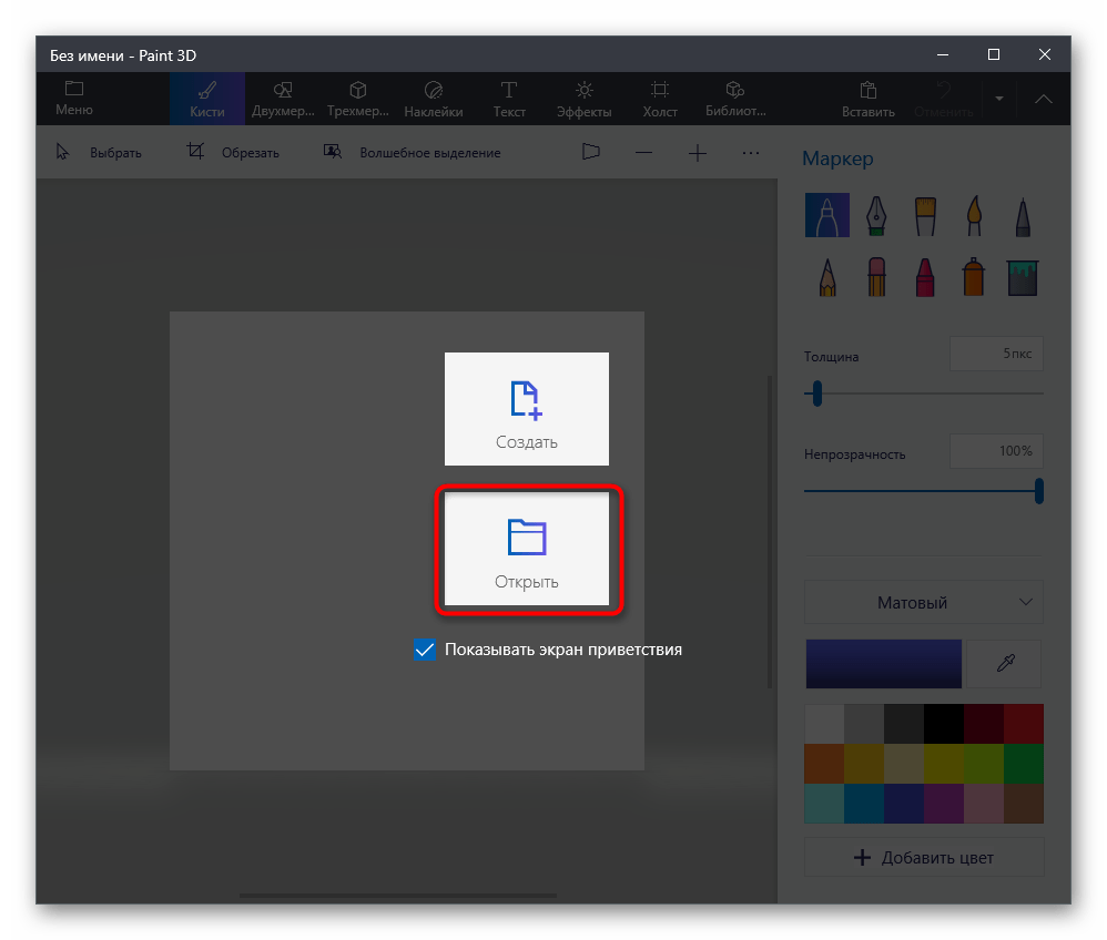 После его запускав в экране приветствия выберите вариант «Открыть».