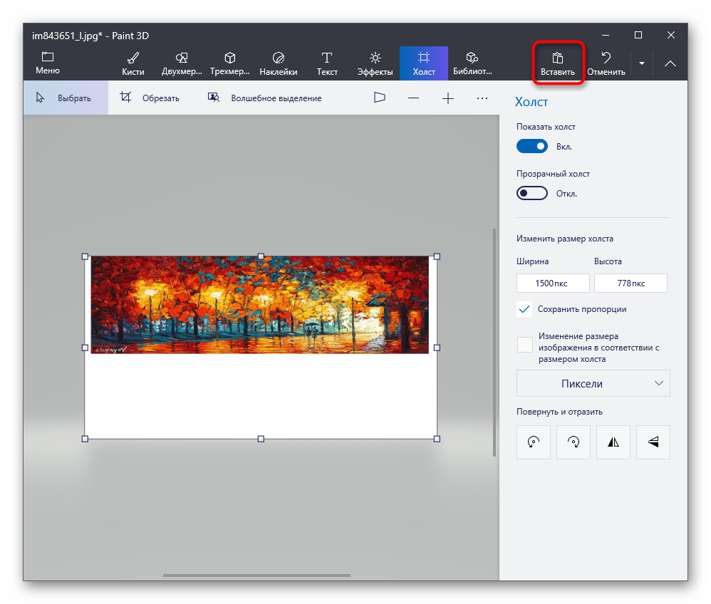 Вернитесь к графическому редактору и щелкните по кнопке «Вставить».