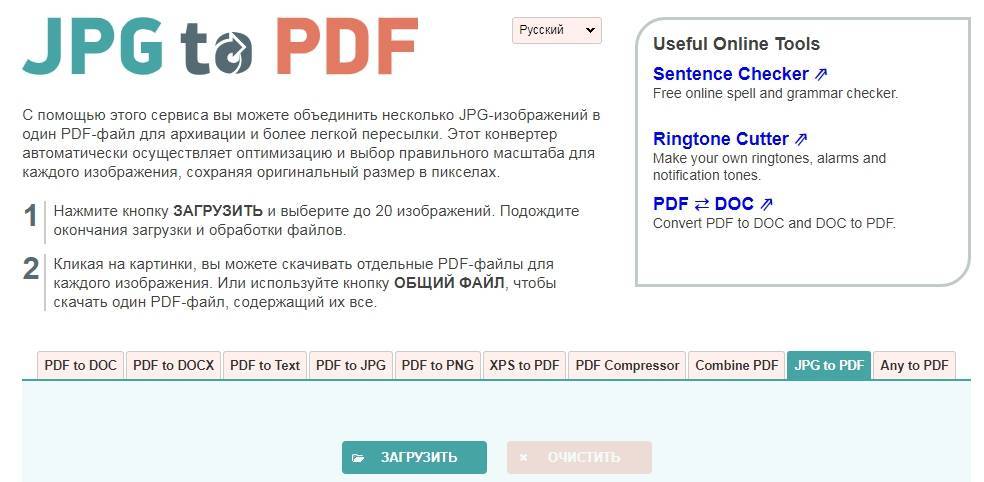 Ни и конечно же в догонку я дам вам езе один простой и быстрый сервис. Он также работает с ПДФ-документами и предусматривает комбинирование изображений. Но есть один нюанс. Этот сервис соединяет не более 10 изображений, что для многих людей может не подойти.