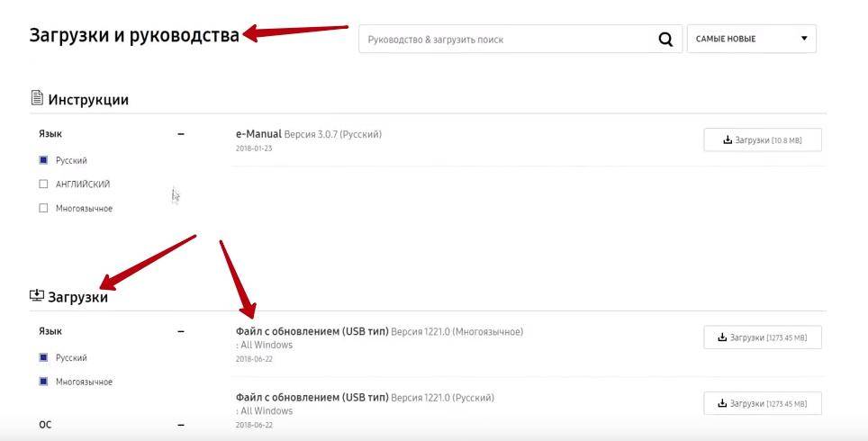 Помимо этого, нужно найти и скачать обновления именно для своей модели, найти их можно на официальном сайте Самсунг. Обязательно оцените объем файла и подберите достаточно емкий накопитель, способный его вместить.