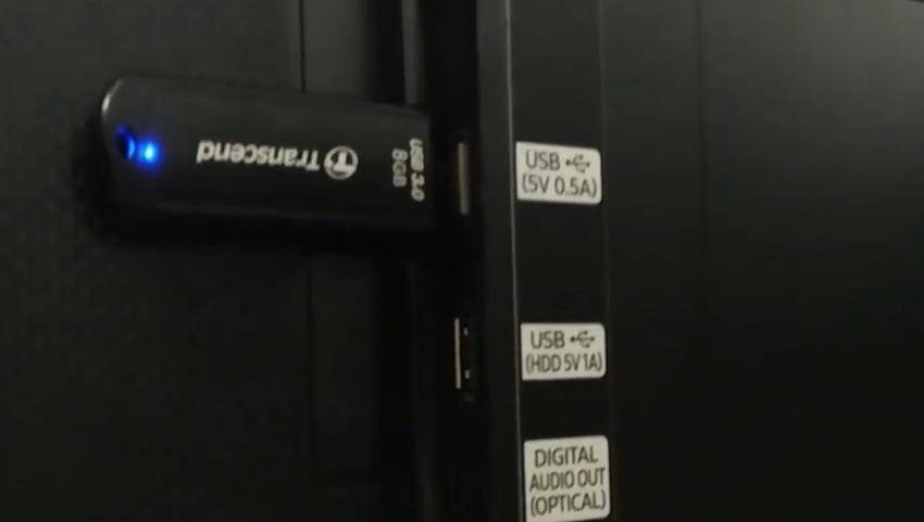 - плотно зафиксировать USB-накопитель в соответствующем порту телевизионного аппарата.