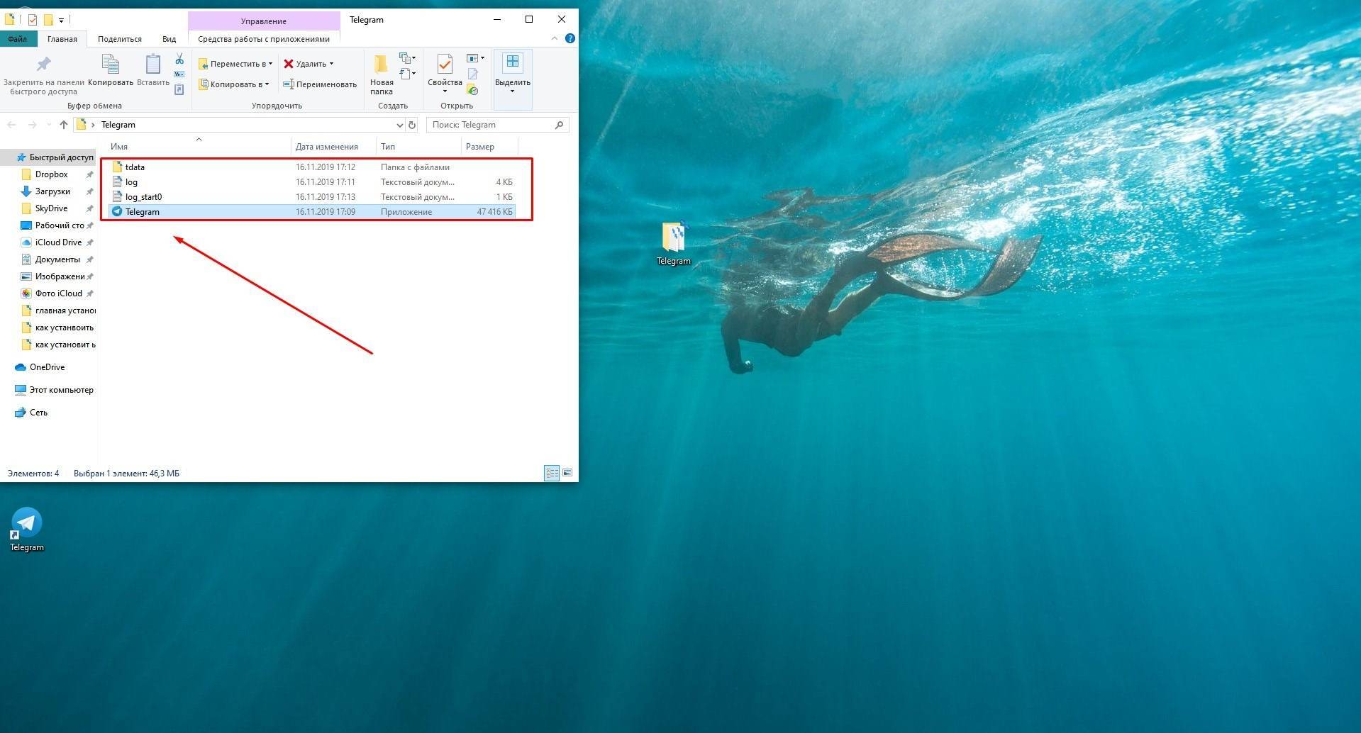 3. Дважды щелкните по архиву мышкой и перетащите каталог с Телеграм на рабочий стол.