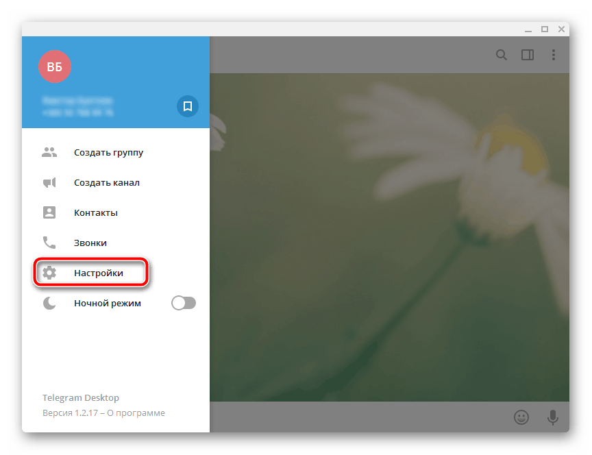 - Запустите Телеграм и перейдите в меню «Настройки».