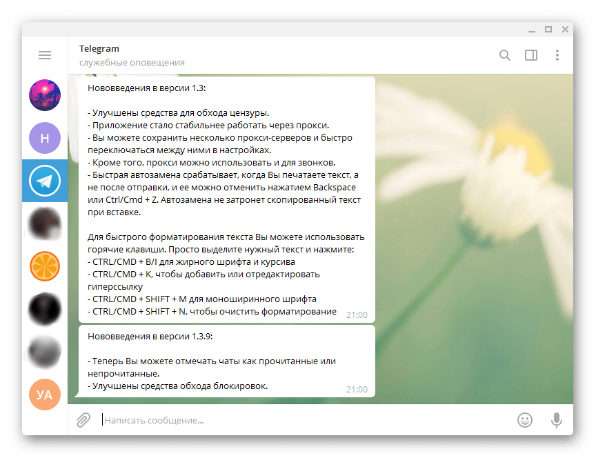 Сразу же откроется служебное оповещение от администрации Телеграмма. Здесь вы можете ознакомиться со всеми изменениями в новой версии.