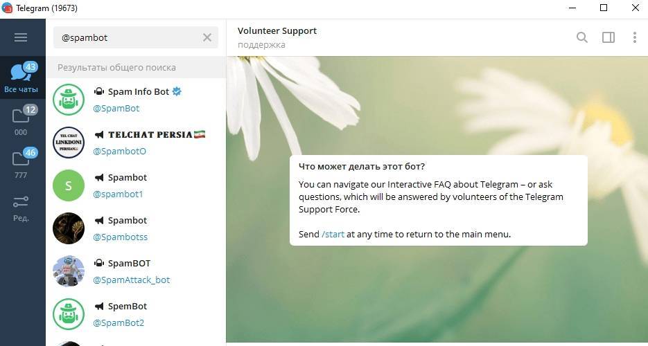 У бота Телеграм есть существенный недостаток – этот способ обращения в суппорт время от времени перестает работать. Проблема решается только разработчиками.