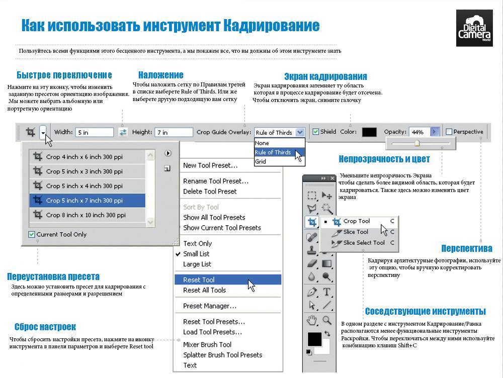 Здесь мы расскажем, как при помощи этого инструмента улучшать композицию фотографии, исправлять заваленные горизонты и подгонять размер изображения для печати.