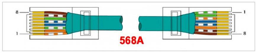 Они отличаются тем, что в них оранжевые и зеленые жилы меняются местами. Остальные провода участвуют при подключениях со скоростью до 1000 Мб/сек.
