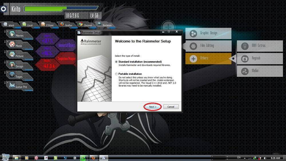 С этими типами скинов, чтобы поместить их в нужное вам место, все, что вам нужно сделать, это нажать и удерживать, а затем перетащить обложку в то место на рабочем столе, на котором вы хотите ее разместить. Многие скины также имеют меню настроек, если они включают в себя несколько частей. Для скина NXT-OS есть процесс установки, который вам нужно пройти, и экран приветствия, к которому вы можете получить доступ в любое время. Вот как выглядит экран приветствия.