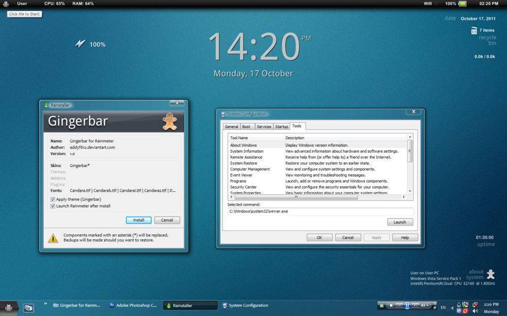1 и Windows 7 (впрочем, она работает и в XP, к тому же появилась как раз во времена этой ОС) с помощью «скинов» (skins), представляющих собой виджеты для рабочего стола (по аналогии с Android), такие как информация об использовании ресурсов системы, часы, оповещения о почте, погода, RSS-читалки и прочие.