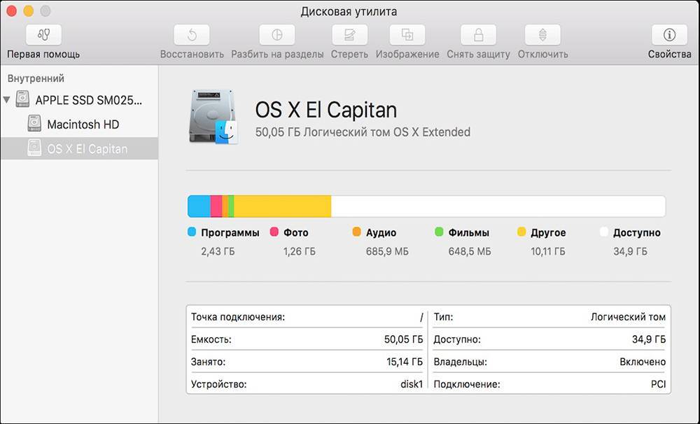 - Запустить приложение «Дисковая утилита».