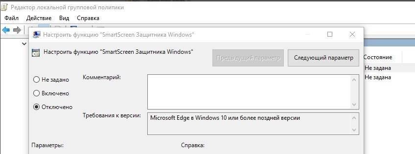 Для продвинутых пользователей существуют также еще два дополнительных метода отключения SmartScreen — путём редактирования параметров реестра или при помощи групповых политик.