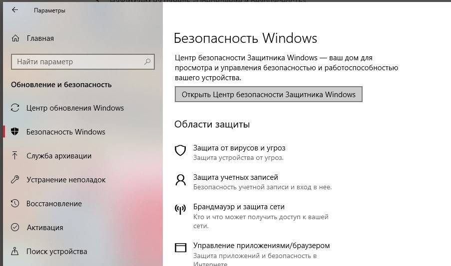 - Первым делом нам надо открыть настройки Windows Defender, в новом обновлении его настройки были убраны в отдельное приложения.