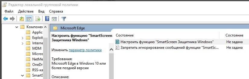Заключительный способ отключения подойдет тем, кто использует фильтр SmartScreen в стандартном браузере Microsoft Edge: