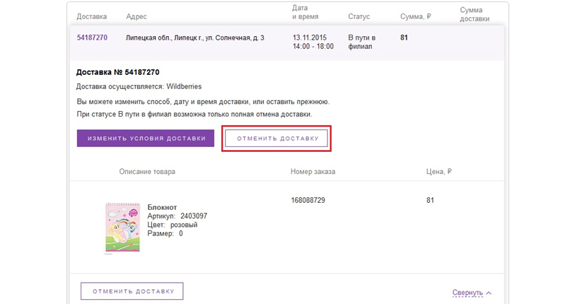 Рассмотрим все доступные способы, как отменить доставку на сайте Вайлдберриз.