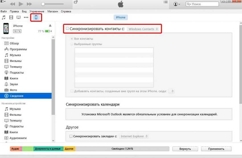 Перемещать данные телефонной книги с помощью iTunes очень удобно