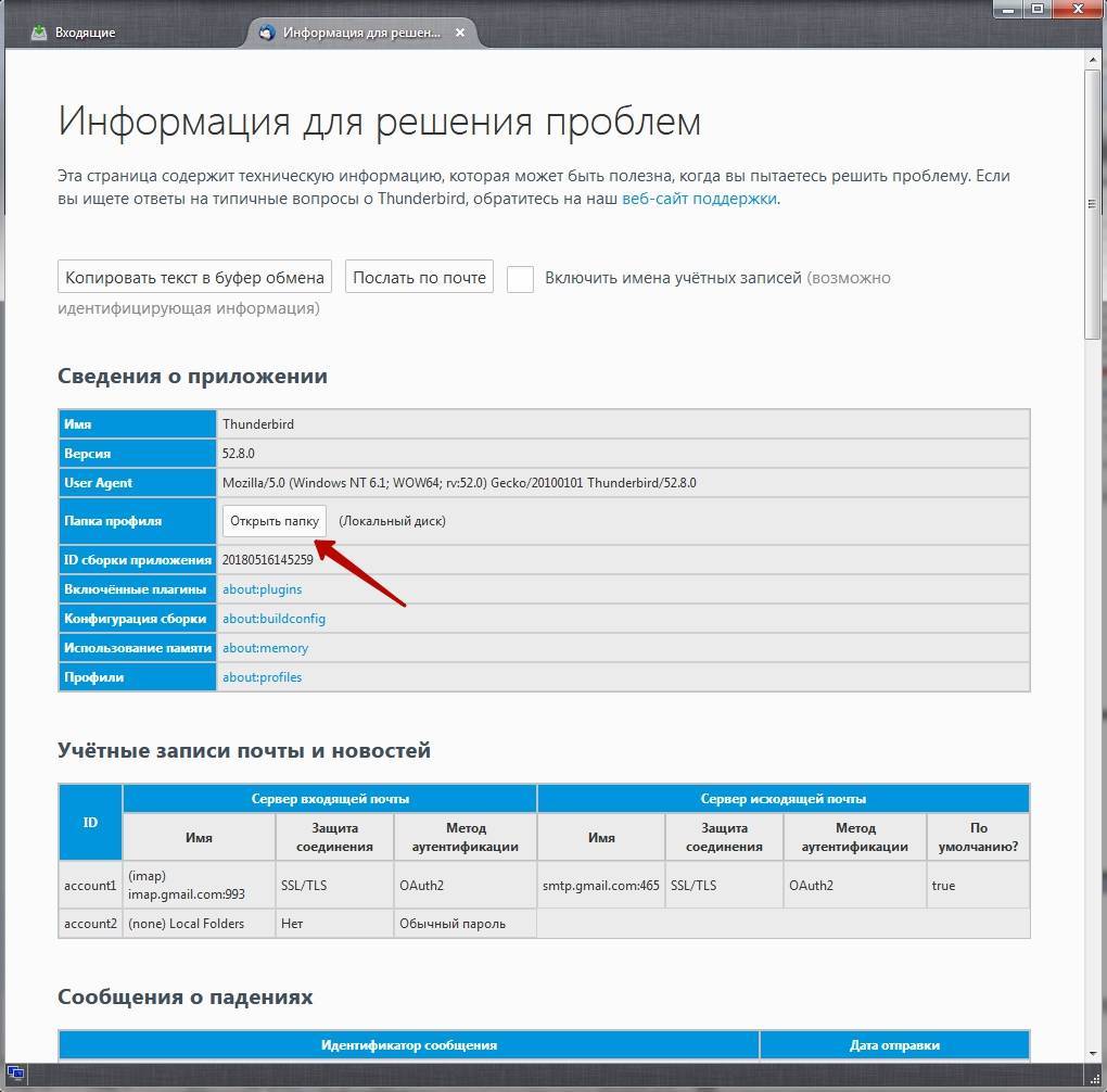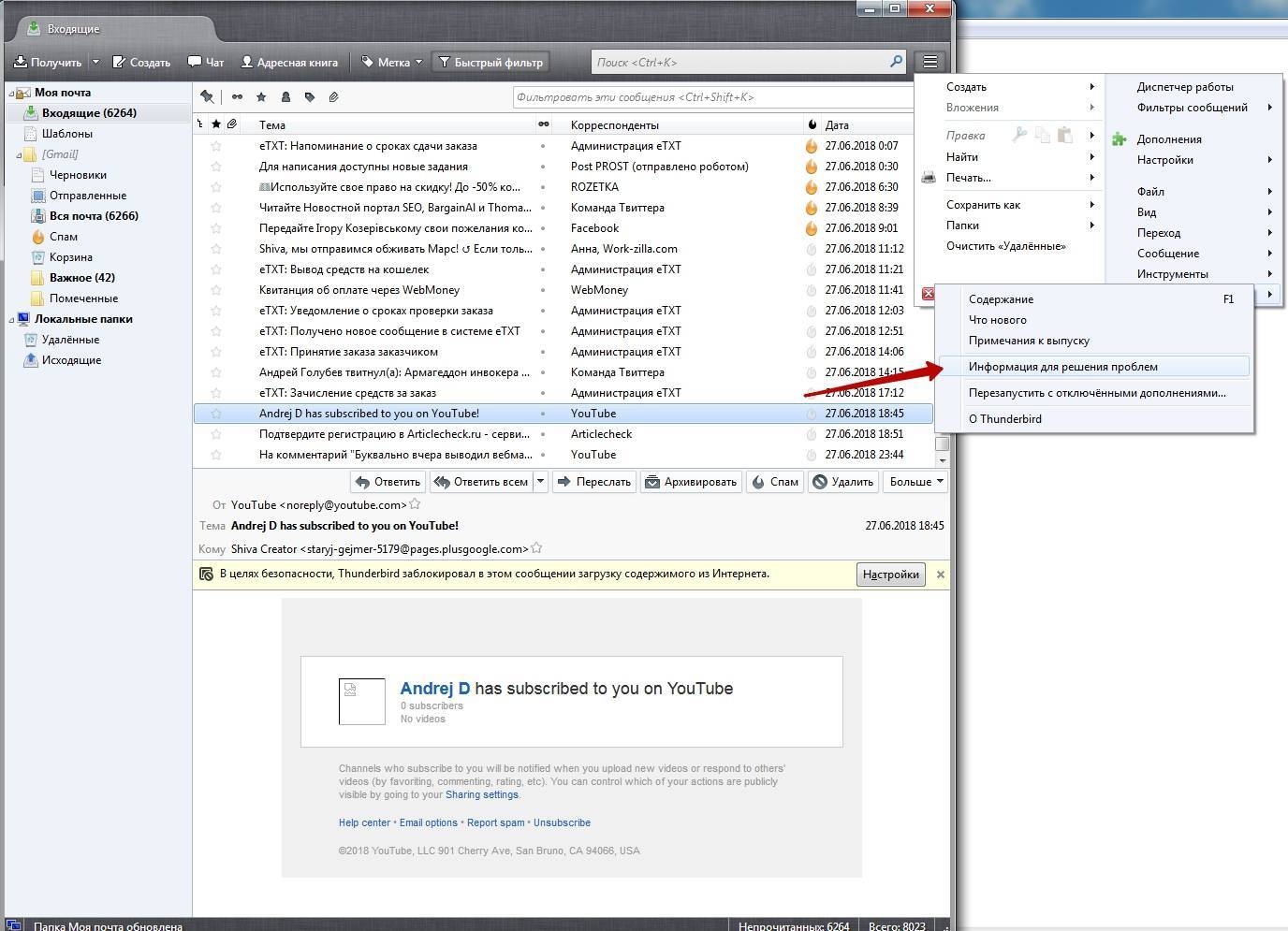 Вместо — «oyxt8jon.default» будет название вашего профиля, цифры и буквы будут другие. Если не помните где установлен фандербирд. Здесь так же как и forefox можно посмотреть в какой папке находится профиль thunderbird. Нажмите кнопку настройки. Наведите курсор на пункт «Справка». Из контекстного меню выберите «Информация для решения проблем».
