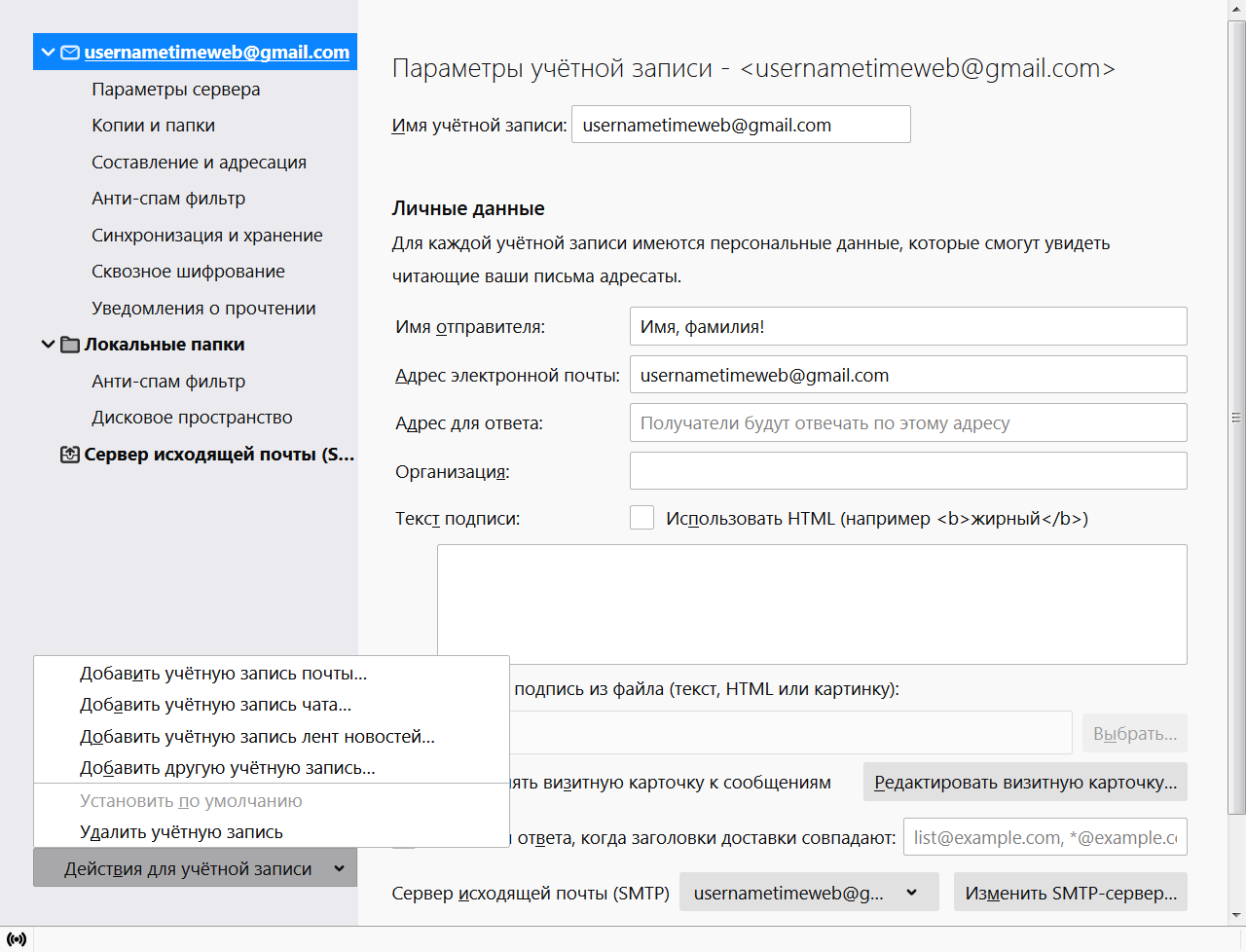 Перенос почты Mozilla Thunderbird с помощью Gmail