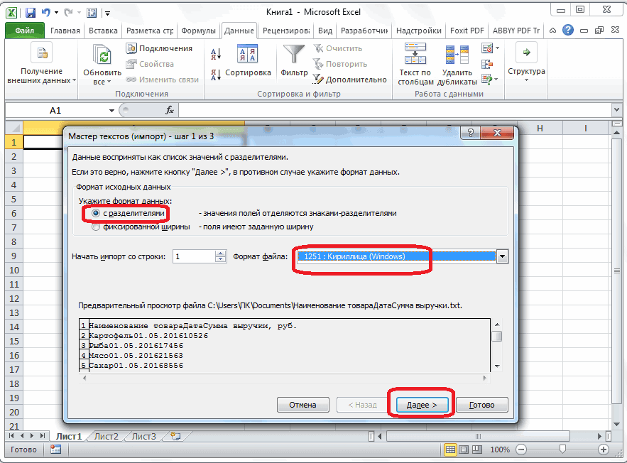 Далее, при желании, можноОткрывается окно импорта текстового листа могут не
