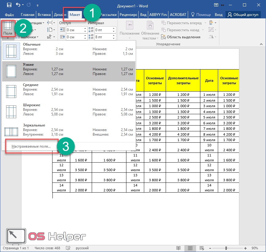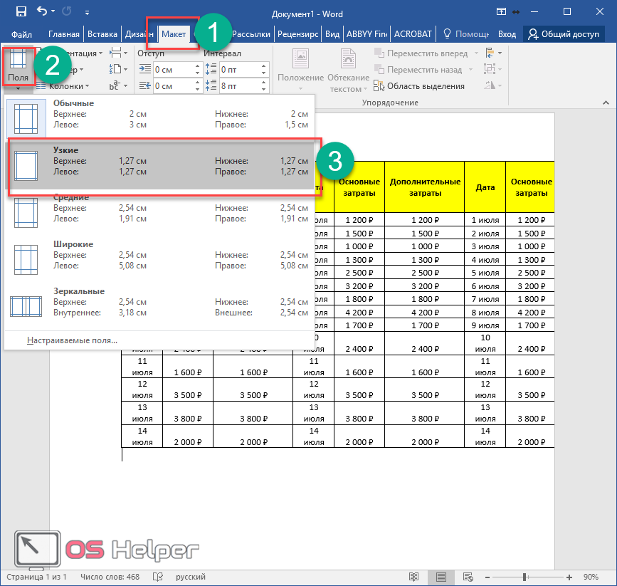 Для этого нужно перейти на вкладку «Главная», кликнуть на кнопку «Поля» и выбрать пункт «Узкие».