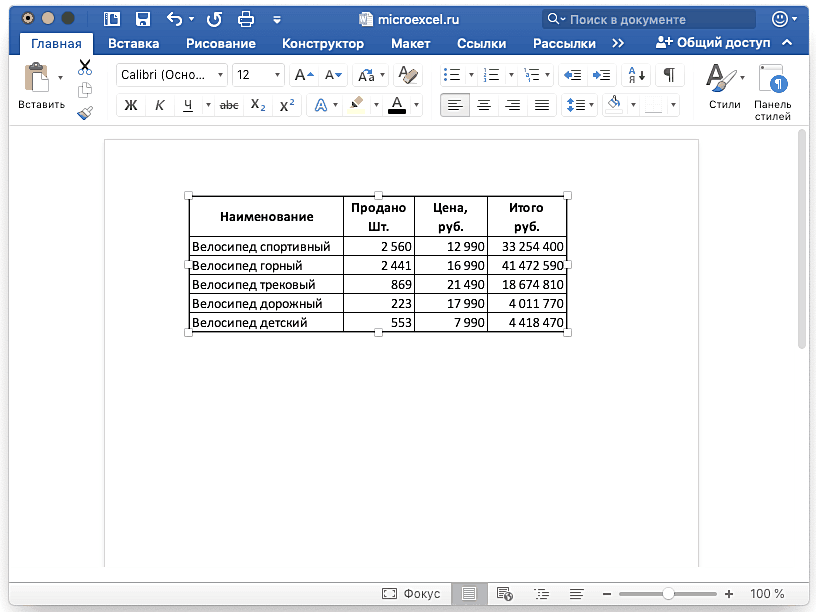 в Worde, только: Все понятно , но есть пример появиться таблица. Жмем