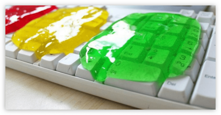 Этот способ отлично подойдет в том случае, если зазор между клавишами достаточной ширины (от 1 мм), чтобы гель смог проникнуть внутрь. «Лизун» из себя представляет липкую желеобразную массу. Его необходимо просто положить на клавиатуру, где он, благодаря своей структуре, под собственной массой начнет просачиваться между клавиш. Пыль и грязь, которая там находится, прилипнет к поверхности “Лизуна”, после чего его можно вытаскивать и мыть.