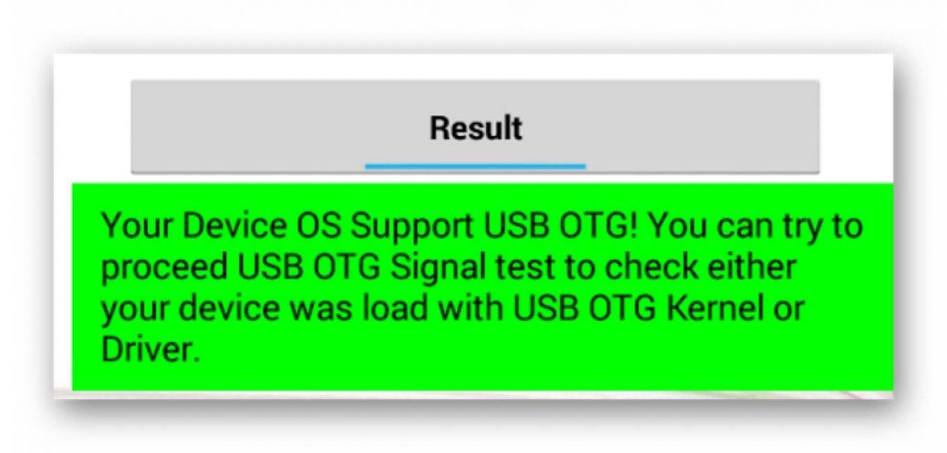 Первое — в случае положительного результата, подразумевающего, что аппарат поддерживает технологию OTG.