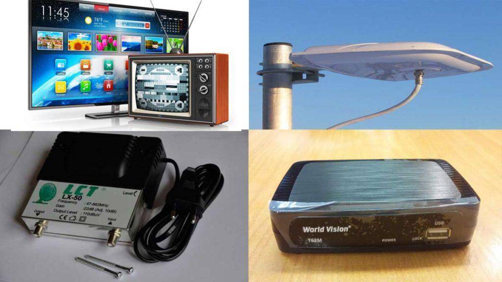 Антенна, тюнер DVB-T2 или телевизор со встроенными функциями входят в число обязательных элементов для установки номеров. Для их подключения используются специальные кабели, которые поставляются с устройствами при покупке.