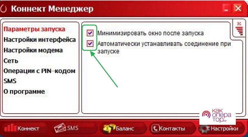 В разделе «Параметры запуска» можно включить автоматическую установку соединения при запуске программы, а также включить сворачивание окна в трей на панели задач, чтобы не мешать пользователю.