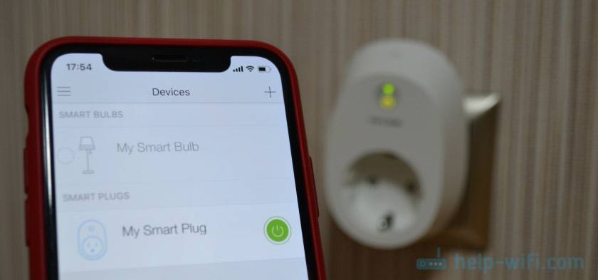 По завершению настройки индикатор на HS100 или HS110 будет гореть зеленым цветом. А сама розетка появится в списке устройств в приложении Kasa.