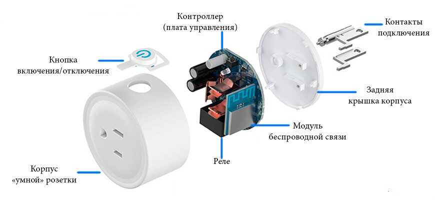 Конструктивно прибор состоит из исполнительного механического модуля (электромагнитного реле), подключающего и отключающего электрические цепи, и управляющего им процессора. К умной розетке может подключаться любой домашний прибор с паспортной мощностью до 3,5 кВт. С учетом этого ограничения пользователь выбирает изделие с подходящим для него функционалом.