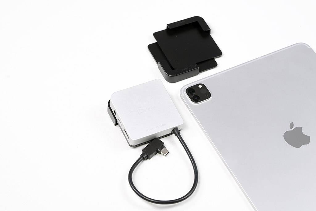 В комплекте с алюминиевой основой идут 5 отдельных модулей с магнитным креплением. Все вместе можно комбинировать 12-ю разными способами для самых разных задач, от резервного копирования до зарядки макбука и подключения нескольких дополнительных мониторов.