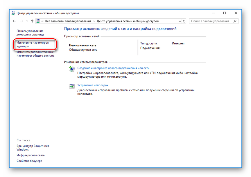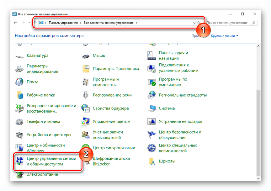 - Через «Панель управления» перейдите к окну «Управление сетями».