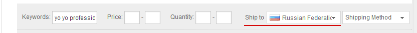 Ship to – страна, в которую надо доставить товар. В нашем случае выбираем Россию. Не все продавцы доставляют товар к нам, так что, это тоже может снизить число предложений.