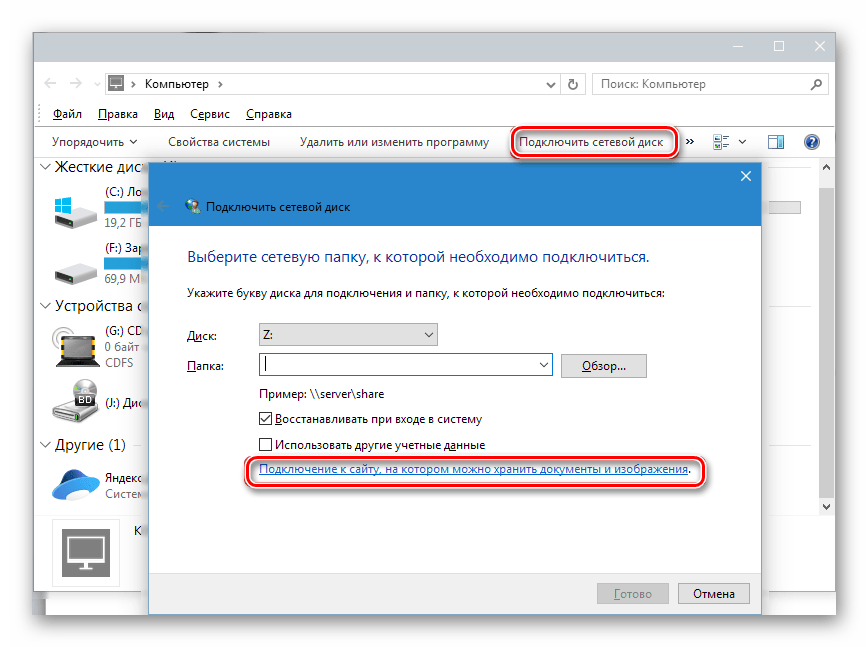 Подробнее: Как подключить Яндекс диск как сетевой диск