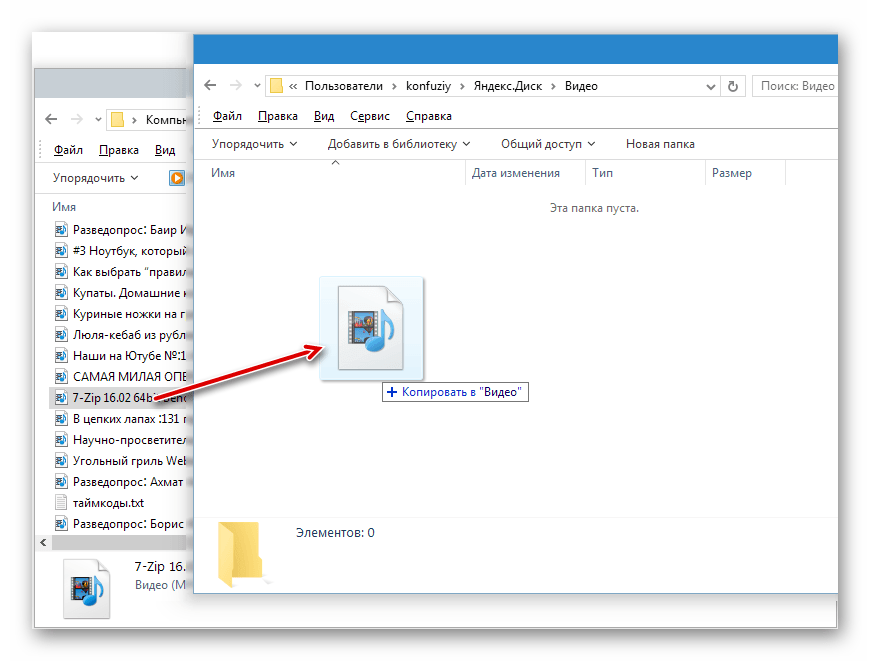 То, что вы хотите сохранить в созданную папку, прекрасно копируется с компьютера при помощи простого перетаскивания. При перетаскивании поместите файл в окно, которое приглашает загрузить файлы на Яндекс Диск.
