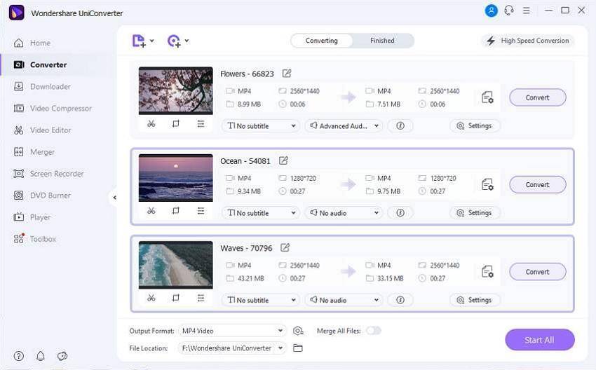 Нажмите кнопку «Convert» или «Convert All» на основном интерфейсе, чтобы начать конвертирование видео в другой формат.